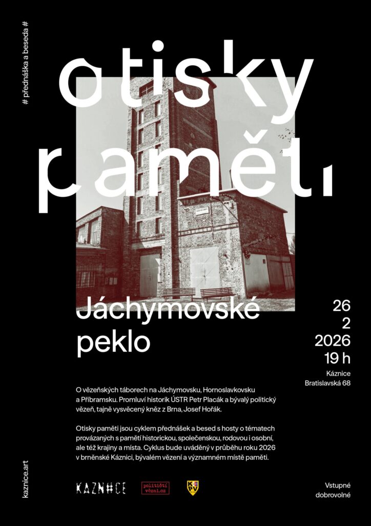 Od konce února bude v průběhu celého roku 2026 v Káznici probíhat cyklus besed a přednášek nazvaný Otisky paměti. V rámci těchto setkávání, otevřeným laické i odborné veřejnosti, se budeme věnovat tématu československých uranových lágrů, politických represí komunistického režimu a jejich dlouhodobým i přetrvávajícím dopadům.
